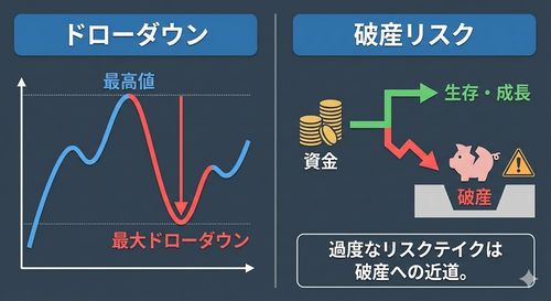 それが「ドローダウン(最大含み損)」と「破綻(ロスカット)」です。