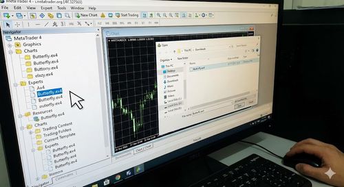 - MT4の所定のフォルダに、届いたButterflyのファイルをドラッグ&ドロップします。