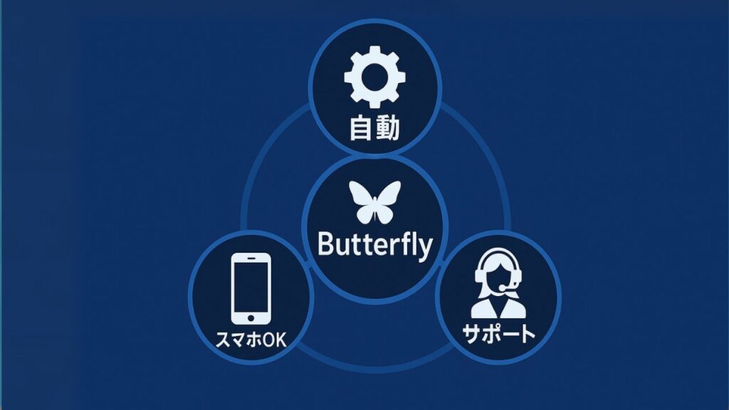 スマホ×自動×サポート完備=Butterflyの強み